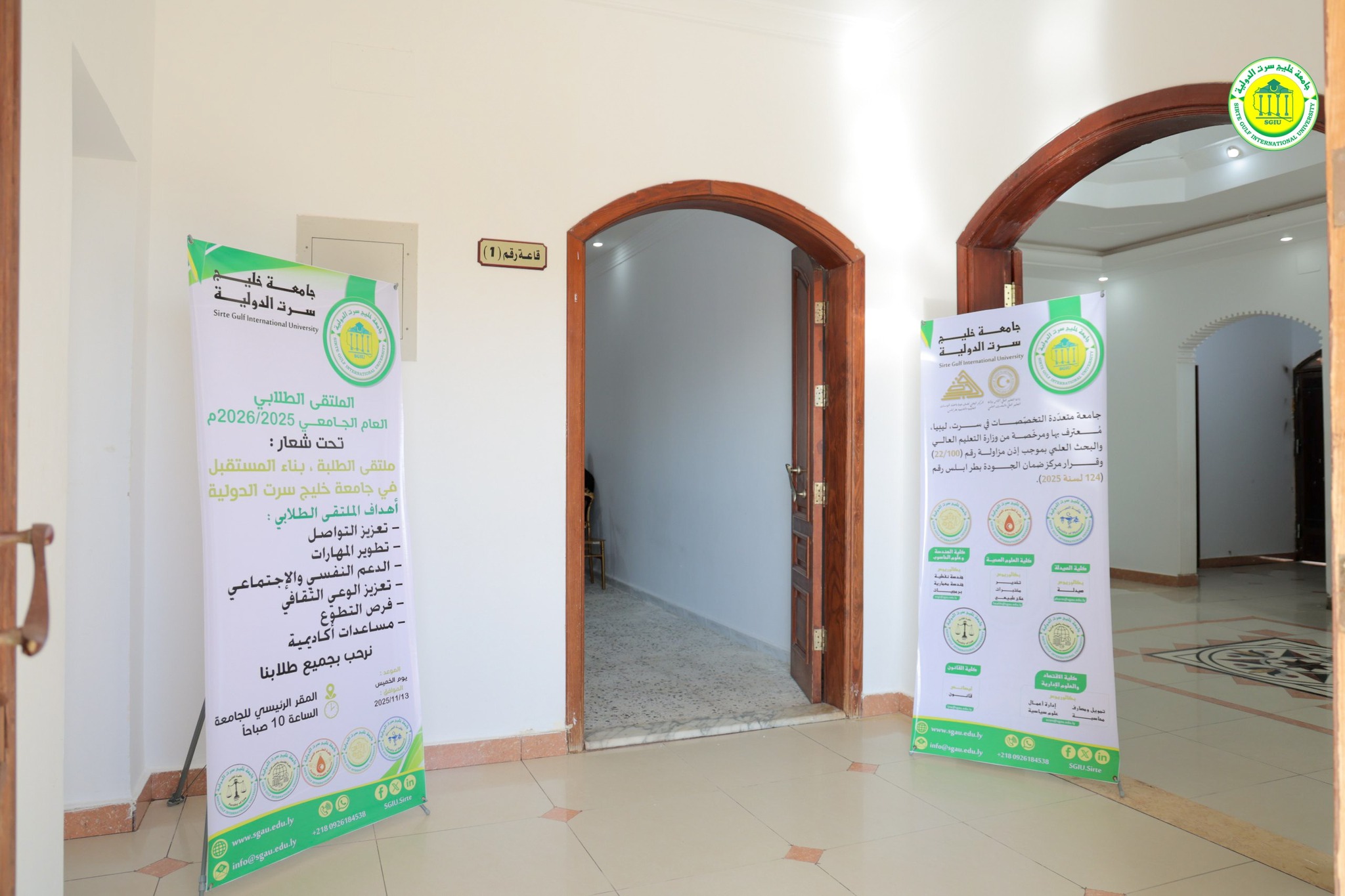 نظّمت جامعة خليج سرت الدولية صباح اليوم الخميس فعاليات الملتقى الطلابي الأول داخل الحرم الجامعي، بمشاركة واسعة من الطلبة وأعضاء هيئة التدريس، وبحضور رئيس مجلس الإدارة الأستاذ سالمة اصبيع، ورئيس الجامعة الدكتور محمد خليل، إلى جانب المسجّل العام، ومدير إدارة الدراسة والامتحانات، وعمداء الكليات وعدد من أعضاء هيئة التدريس.